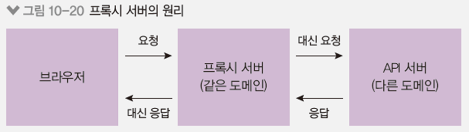 // cors 문제를 해결하는 다른방법은 프록시(대리인) 서버를 사용하는 것이다.