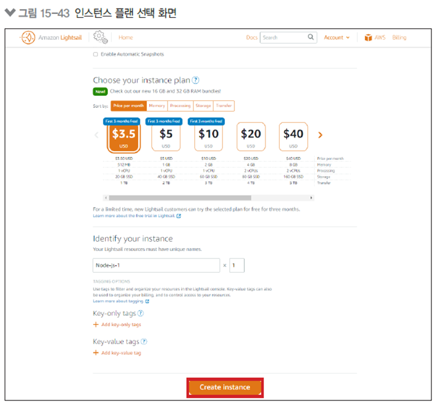⇒ 인스턴스 계획을 선택( 첫 세달은 무료)
