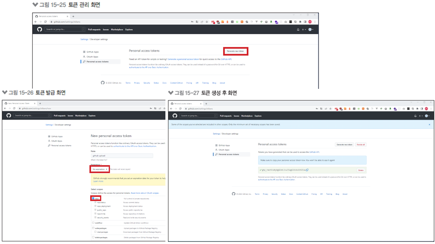 ⇒ https://github.com/settings/tokens 에서 Generate new token 클릭