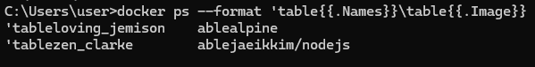 - PORTS : 컨테이너가 개방한 포트와 호스트에 연결한 포트. 미설정시 표시되지 않는다.
