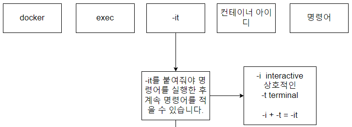 - "docker exec <컨테이너 아이디> 명령어"