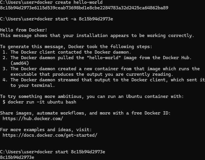 Docker create/start 명령어의 실행 - 명령어 수행 예시