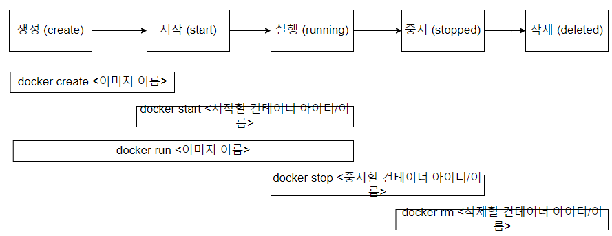 해당 명령어의 기능은 "docker create <이미지 이름>" + "docker start <컨테이너 아이디/이름>"으로 나눠 볼 수 있다.