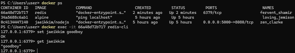 3. 두 번째 터미널에서 컨테이너가 잘 작동하고 있는지