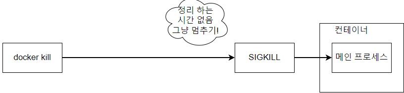 완료하고 컨테이너를 중지 시킨다. - Kill은 Stop과 달리 어떠한 것도 기다리지 않고 바로 컨테이너를 중지 시킨다.