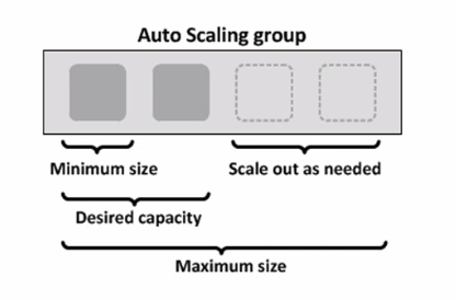 : Auto scaling은 자동 확장성을 갖는 특징이다. 시스템을 구성하고 있는 인스턴스를 하나의 Auto scaling group으로 묶어 유지되어야 하는 최소한의 인스턴스를 지정할 수 있고, 사용량에 따라 인스턴스의 수를 증가/감소할 수 있는 환경을 의미한다.
