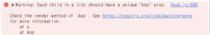 해당 경고 메시지는 각각의 요소 2개에 중복되지 않는 키 값을 설정해주면 해결할 수 있다.