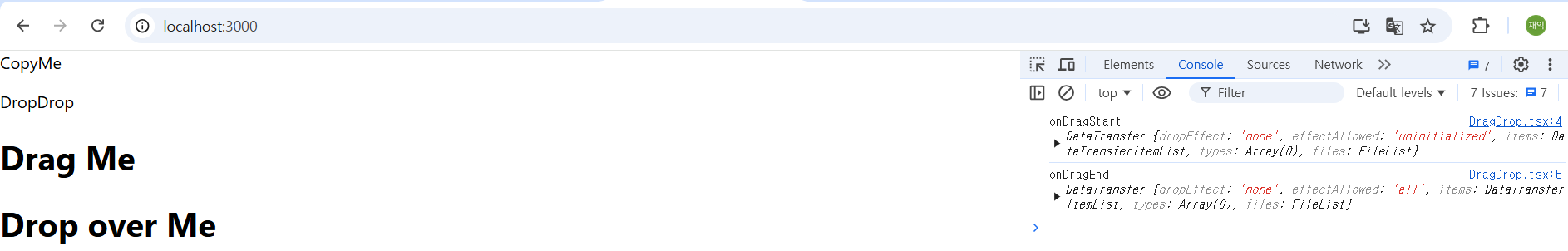 드래그 앤 드롭 이벤트 처리