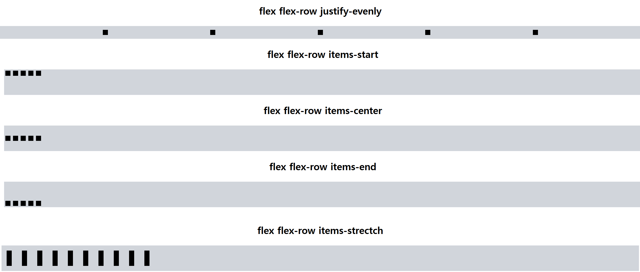 | flex-row | flex-direction: row; | 수평으로 배치하며 과거순으로 순차적으로 배치한다. |
