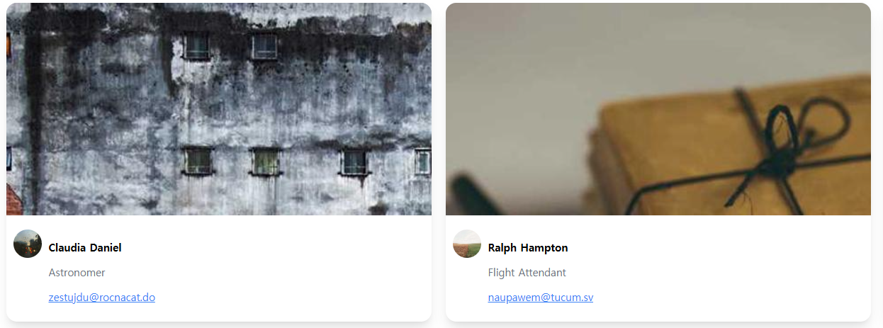 User컴포넌트를 확장 해 Card 컴포넌트를 생성하자. 우선적으로 Card 데이터를 생성한다.