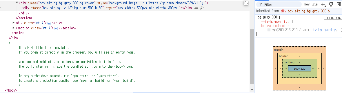 css는 부모 컨테이너의 크기에 대응하기 위해 콘텐츠의 최소, 최대 크기를 설정하는 min-width, max-width, min-height, max-height가 있으며 테일윈드CSS는 min-w-숫자, max-w-숫자, min-h-숫자, max-h-숫자 클래스를 제공한다.