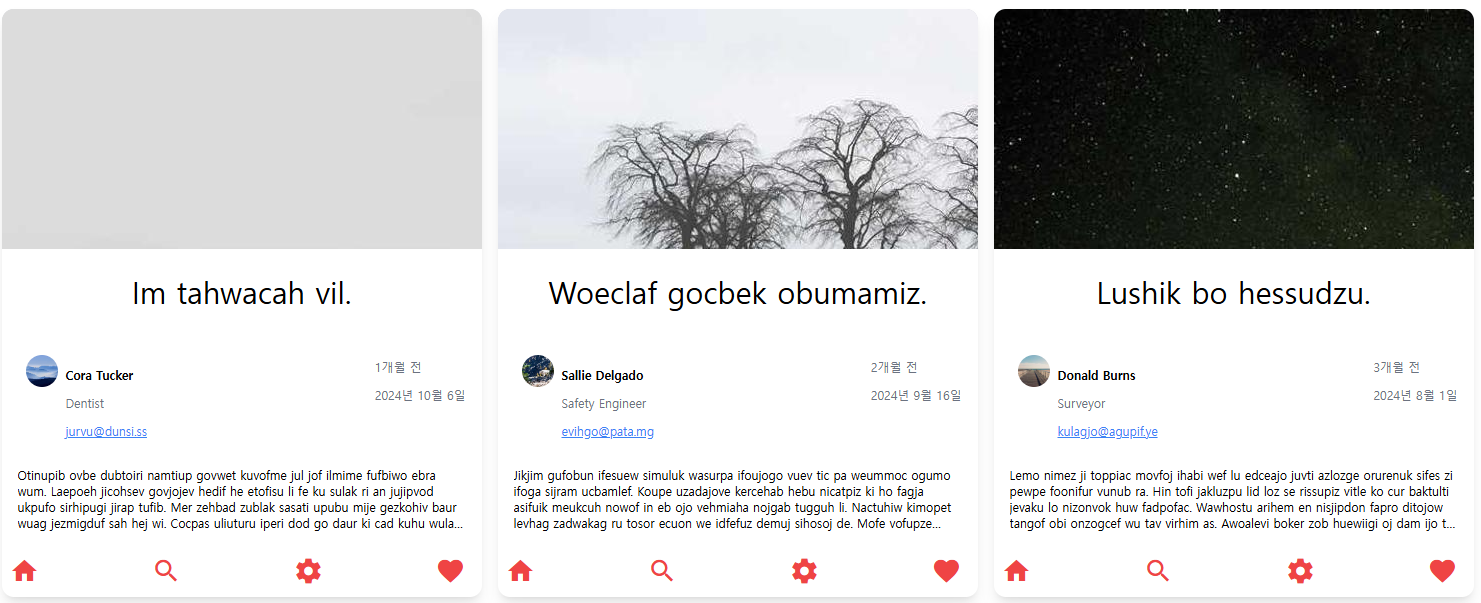 데이터 생성 후 Card컴포넌트 소스를 추가한다.