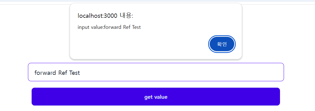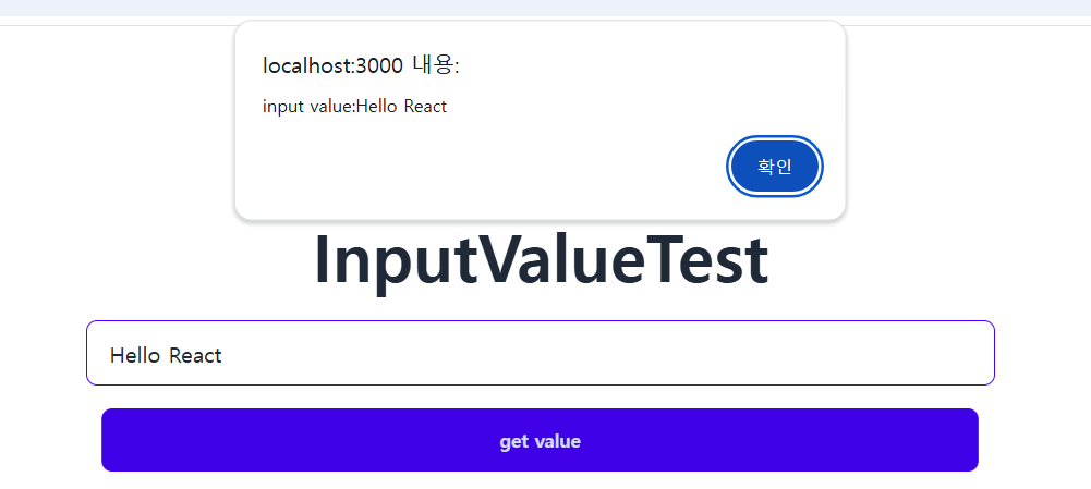 하지만 ref 속성이 유효한 값, 즉 물리DOM 객체가 만들어지면 value속성 값을 통해 값을 얻을 수 있으므로 useState훅을 사용하지 않고서 input value 속성값을 가져올 수 있다. ref를 통한 value값을 얻어오는 코드를 추가하자.