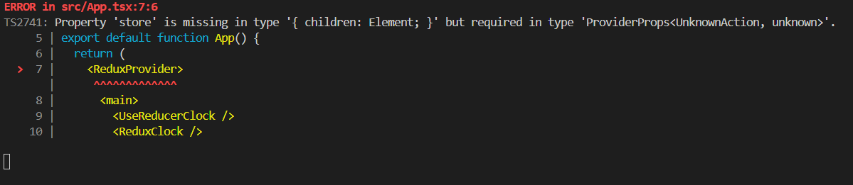 ReduxProvider를 App.tsx 파일에 적용 시 다음처럼 store 속성값이 설정되어 있지 않아 오류가 발생한다. 앞으로 오류가 발생하는 배경을 알아보자.