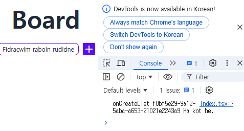 새로운 목록을 생성하기 위해 Board 컴포넌트에 포함될 CreateListForm 을 추가한다.